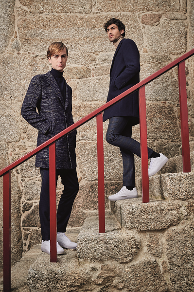 Los cuadros escoceses y los juegos de patrones clásicos con cuadros actuales, fusionados con colores de temporada, hacen de esta línea un ejemplo de cómo lo bello debe ser cómodo, introduciendo el elastano en sus composiciones y poniendo siempre la anatomía del hombre como prioridad. Los colores de Evolution se mueven entre el marrón chocolate, el naranja tostado, el beige piedra, el azul marino, el azul vaquero y el azul acero. Una paleta armoniosa y fácil de combinar que da lugar a una línea versátil y funcional, perfecta para el hombre contemporáneo con esencia clásica.