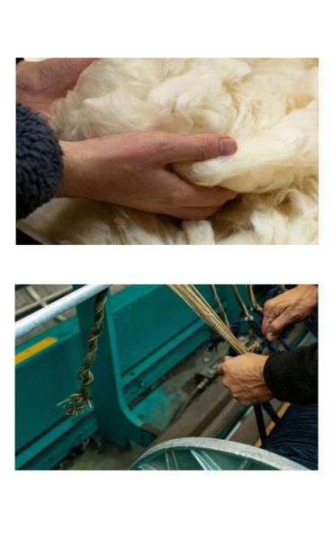 Lã virgem e o processo de produção de um dos nossos fornecedores Abraham Moon & Sons Ltd.